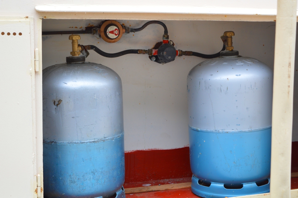 Today Noel was the electrician on board and I became the gas technician. The wheelhouse stunk of gas this morning. When I opened the gas locker (outside, near the wheelhouse door), a wave of gas assaulted my nostrils!