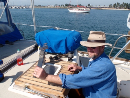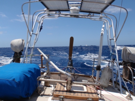 Mariah II’s aft hung rudder is like a barn door, wave loading can be high and an auto pilot ram directly mounted to the tiller would have to work hard. Most boats, that we met along the way, that had their auto pilots connected to any other part of their steering had failures. Quadrant mounted servo have to be enormous and use too much electricity even wheel mounted pilots failed, they spend too much time over compensating and thus working hard and using more power.
