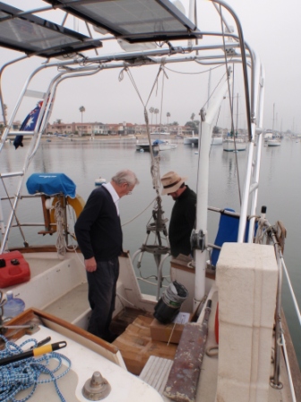 With ‘Roy’ fully limbered up, Dad and Noel measured up the required Aries support frame out of tubing. Then Noel and I commenced search by ‘phone and many miles on pushbike to find a fabricator to help fabricate the frame. A week later we changed tack and embarked on an oratorical fiesta searching for an electric welder large enough to handle our proposed projects and small enough to afford (in both dollars and power) and stow. Noel had pondered the problems of the cockpit position and hydraulics and dialled up his ingenuity. Many moments I caught him gazing at the back of the boat trying to join the dots and ultimately creating an interesting overture. After many hours of internet searching, hoping someone had simply written up the answer, it seemed the emergency steering was the way to go. It meant much welding; weighing up the cost of paying a fabricator and buying a welder resulted in a new crew member in the form of an 110v/240v arc welder.
