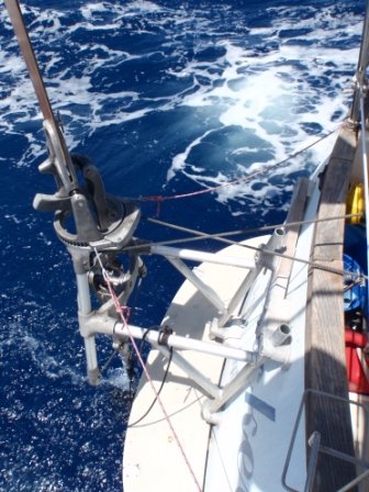 Incidentally, the worm of doubt turned into fish bait. So far we have successfully tested ‘Roy’ in 8 to 40 knots of apparent wind. We are in no hurry to try him out in stronger winds and we are confident he will cope admirably as the Aries generally works better in stronger winds.