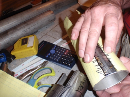 jparies 5 – Having calculated the required circumference and drawing it out on paper, Noel could calculate how much to cut out to reduce the size of the tubing for a snug fit over the rudder stock.