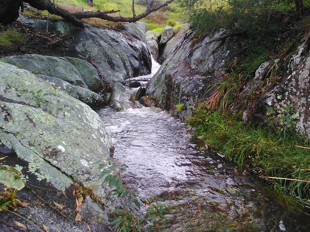 The creek hums a lullaby as it roams along pink and grey rocks painting them a shiny black. The clear icy water strays along the sandy bed carving new paths after flood rain, pushing at reeds that wave a farewell.