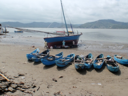 Local fishing boat – the little boats got on the big boat and are launched at sea!