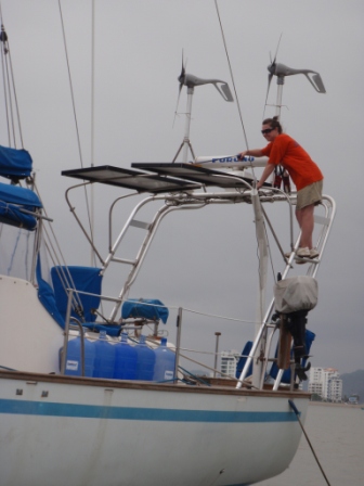 In the calm waters we took the opportunity to climb the mast to take some pictures and check all was well.