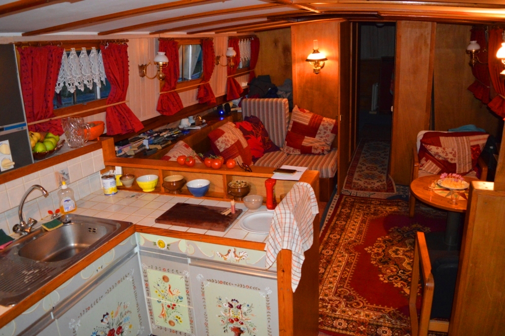 This morning there is stuff everywhere, we have to live in half the boat now. Eighteen-and-a-half metres divided by two isn’t very much! It’s not so much the smaller space, but we’ve had to cram 18.5 metres of ‘stuff’ into the other half!