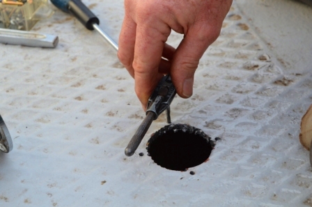 Another hole, this time in the deck, for the new water tanks. These will be situated under the bed.