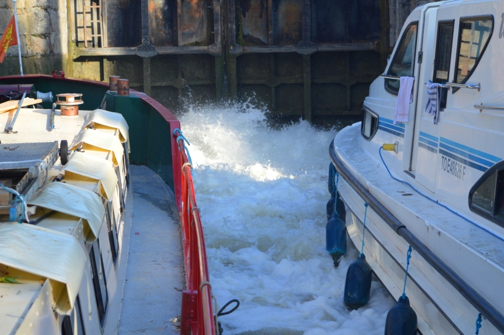 We travelled through a system of 6 locks with these two boats. We let them over-take us on the canal – then they wouldn’t let us in the next lock!
